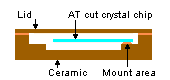 This is a crystal unit that has a crystal chip that was cut at the "AT cut" angle from the quartz crystal crystallographic axis. This is one of the most widely used types of crystal units, which covers the Megahertz (MHz) band. Since this type of unit has frequency - temperature characteristics for cubic functions with inflection point near room temperature, it has excellent temperature characteristics.