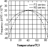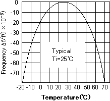 This refers to the variation in frequency due to ambient temperature changes, relative to the reference frequency at +25 ℃. The frequency temperature characteristics are generally expressed by the following approximate formula.