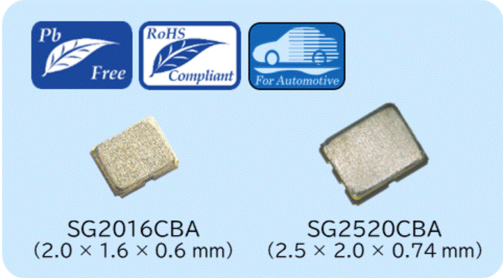 車載用途向け 高周波・低ジッタ水晶発振器 SG2016CBA, SG2520CBA