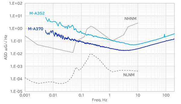 - Low noise performance below the USGS-New High Noise Model (M-A370)