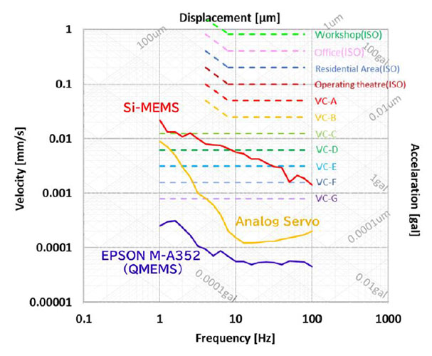 Furthermore, Epson accelerometers have self-noise levels below VC-G (see figure), enabling compliance with the most stringent environmental evaluations.